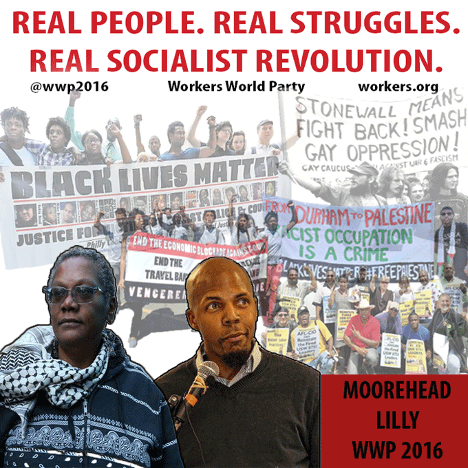 On November 8th, 2015 at the party’s national conference in New York City, the Workers World Party announced its presidential ticket for 2016. Monica Moorehead, the party’s ’16 candidate, was also the WWP nominee in 1996 and 2000. Her running mate is Lamont Lilly.
